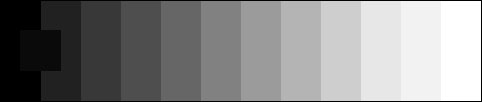 This website may be viewed with different browsers. It has been successfully tested with Microsoft Internet Explorer 6.0, Mozilla 1.7.2, Firefox 0.9.3, Opera 7.5.1 and Netscape 7.1. This website is optimized for a screen area of 1024x768 pixels. Please note that the website's design and accessibility are negatively affected when using a screen area of 800x600 pixels or less. It is important that your monitor is correctly adjusted to achieve the best possible viewing quality for the images. The use of monitor calibration tools is the best way to ensure this. If you do not have a calibrated monitor, please follow the simple steps outlined below to adjust your monitor for a better viewing experience of this site. This will ensure fairly correct shadow and highlight detail for my images as viewed on your screen. Please keep in mind that these steps will not ensure fully correct color rendition and that the colors of the actual artworks may look somewhat different. First, make sure that your video card is set to 24 bit mode or higher to ensure smooth tone and color transitions. Then, set the color temperature of your monitor to 6500 K. Finally, adjust the contrast and brightness controls of your monitor until you can see seperation between all fields in the image below. A black square is located in the two darkest fields. This square should only be visible in the second darkest field. |